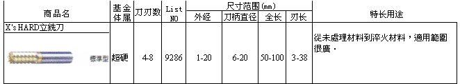 X's HARD立铣刀 9286