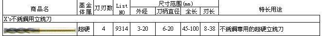 X's不锈钢用立铣刀9314