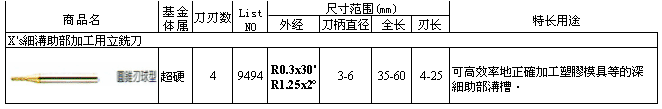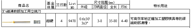 X's细沟助部加工用立铣刀9494