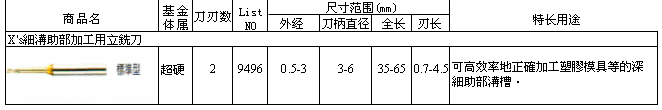 X's细沟助部加工用立铣刀9496