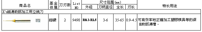 X's细沟助部加工用立铣刀9498