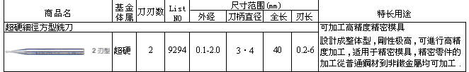 超硬细径方型铣刀9294