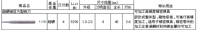 超硬细径方型铣刀9296