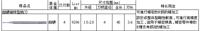 超硬细球型铣刀9296