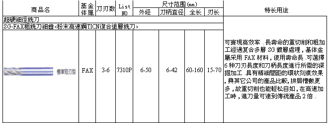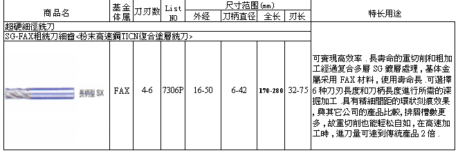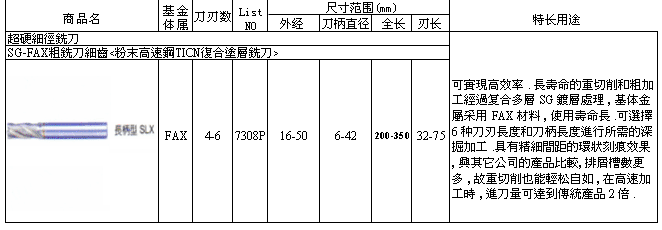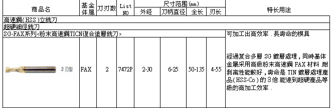 SG-FAX系列-粉末高速钢TICN复合涂层铣刀7472P