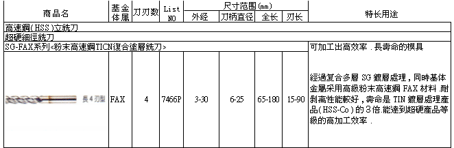 SG-FAX系列-粉末高速钢TICN复合涂层铣刀7466P