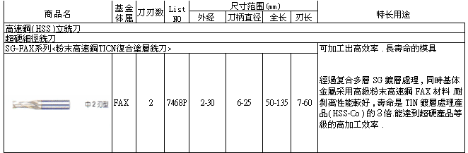 SG-FAX系列-粉末高速钢TICN复合涂层铣刀7468P