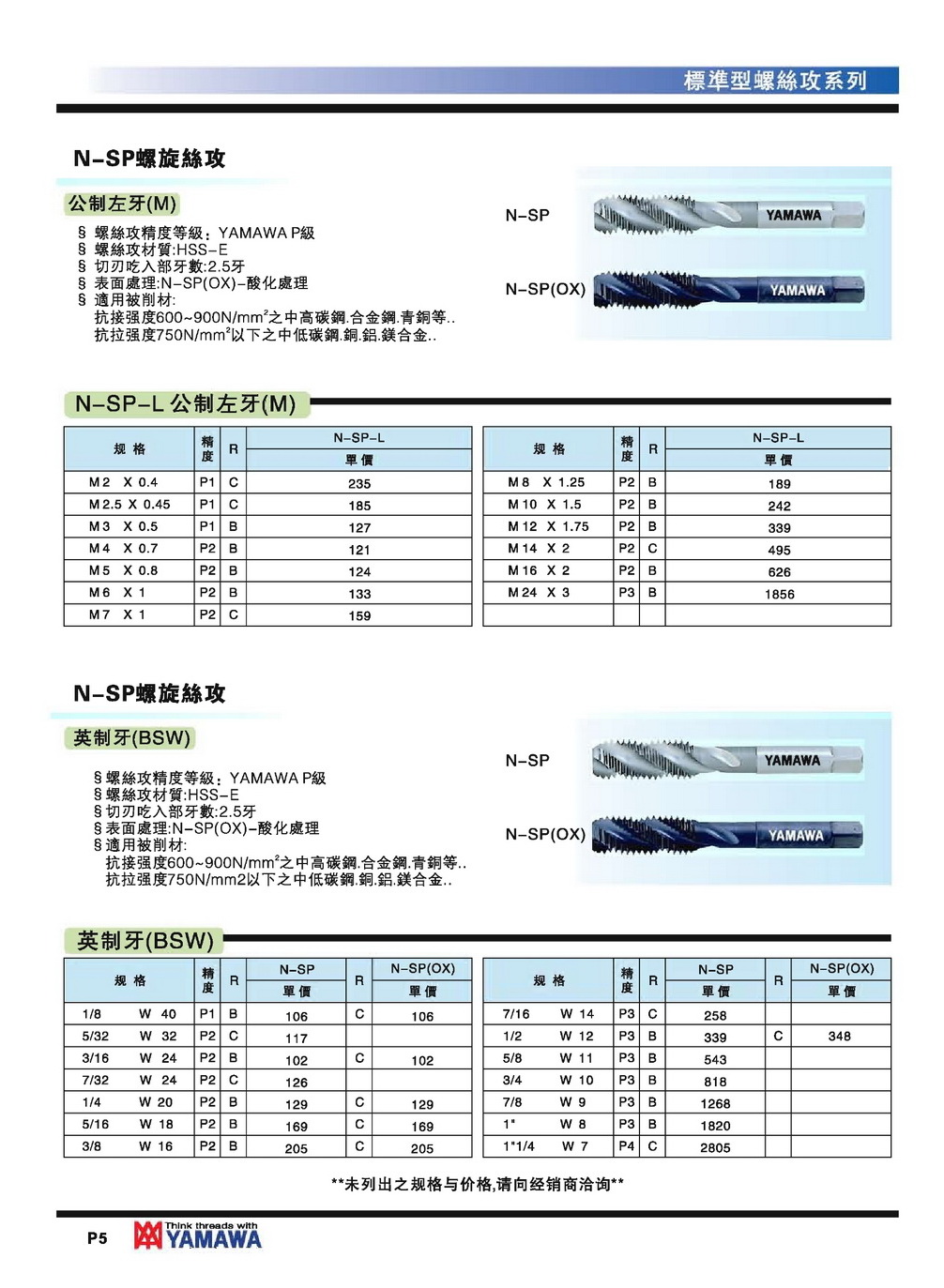 N-PO先端丝攻- YAMAWA管用丝攻系列