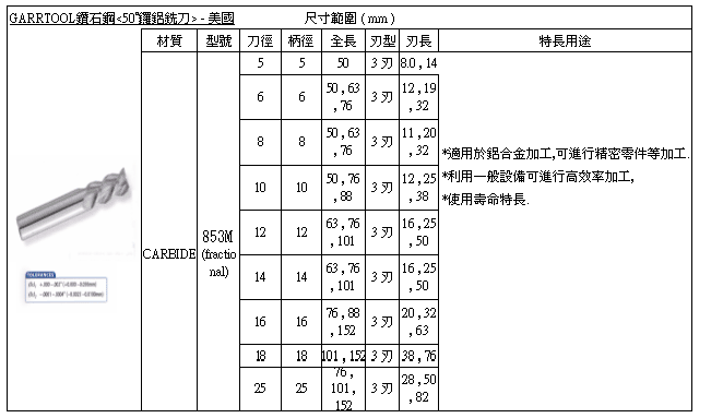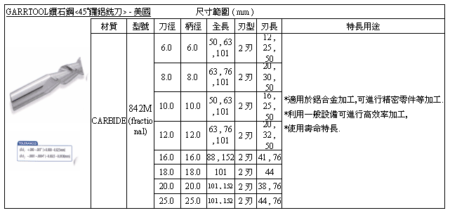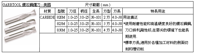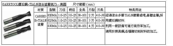 GARRTOOL钻石钢-TIALN复合涂层铣刀