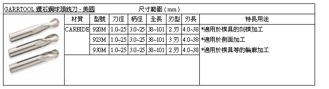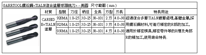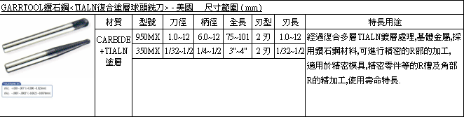 GARRTOOL钻石钢-TIALN复合涂层球头铣刀2