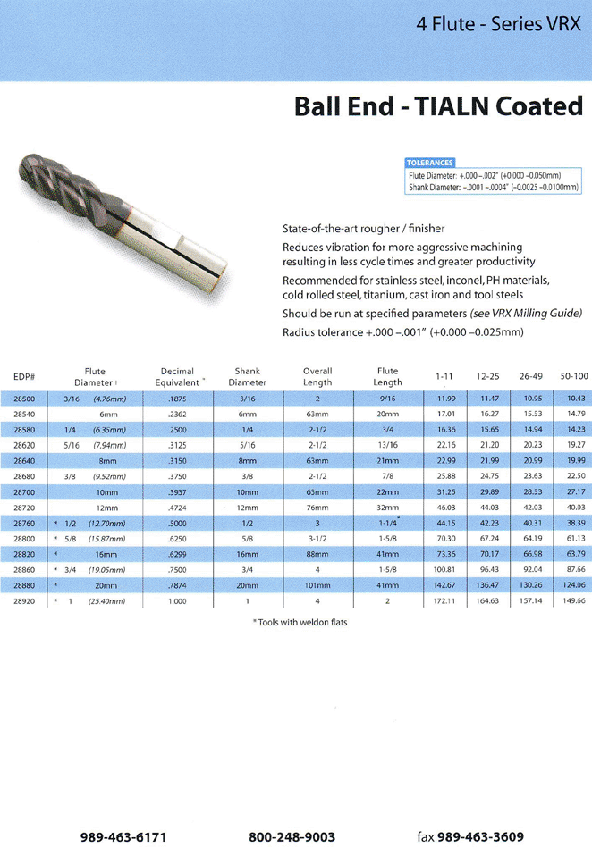 - ANCHOR.V整体超硬无涂层铣刀9450