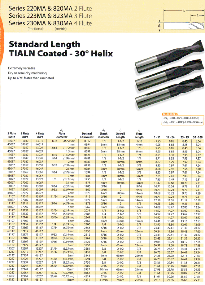 GARRTOOL钻石钢-TIALN复合涂层铣刀