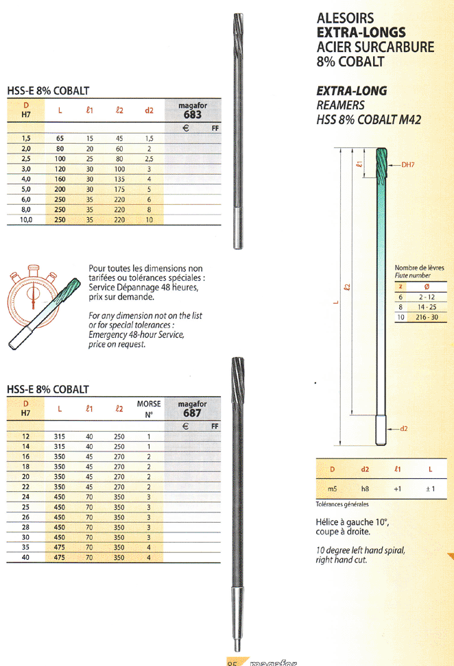 锋钢机用铰刀-特长型