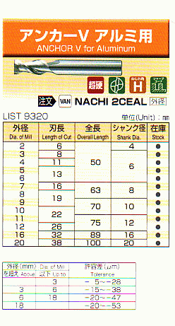 - ANCHOR.V整体超硬无涂层铣刀9320