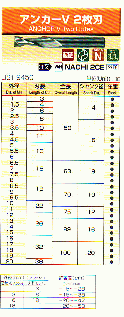 粉末钢铣刀 - >NACHI CUTTING 荔枝牌擠牙絲攻