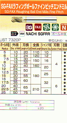 - SG-FAX 粗铣刀细齿球型(粉末高速钢TICN复合涂层)7320P