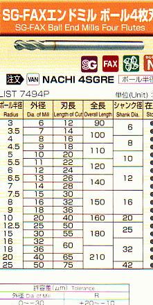 - SG-FAX 球型立铣刀(粉末高速钢TICN复合涂层)7494P