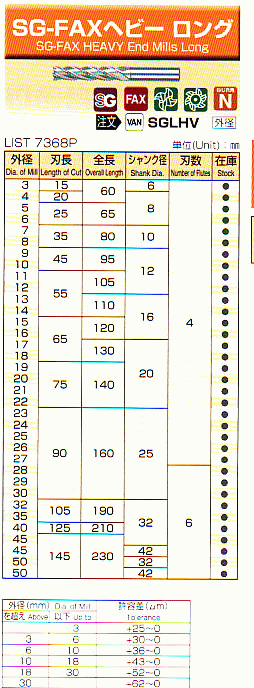 - SG-FAX 重切削立铣刀(粉末高速钢TICN复合涂层)7368P