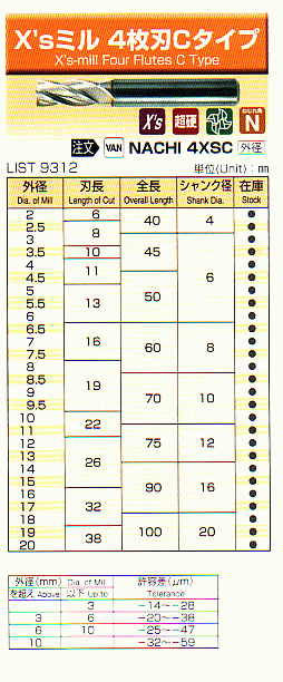 - X's C型立铣刀9312