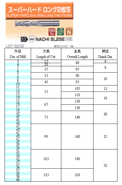 粉末钢铣刀 - >NACHI CUTTING 荔枝牌擠牙絲攻