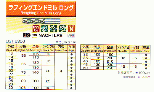 粉末钢铣刀 - >NACHI CUTTING 荔枝牌擠牙絲攻