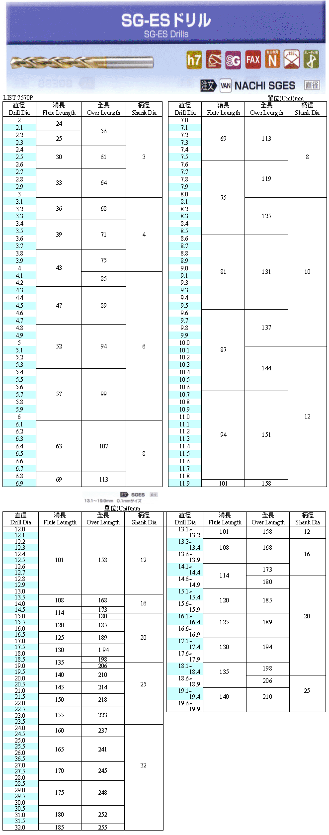 粉末钢铣刀 - >NACHI CUTTING 荔枝牌擠牙絲攻