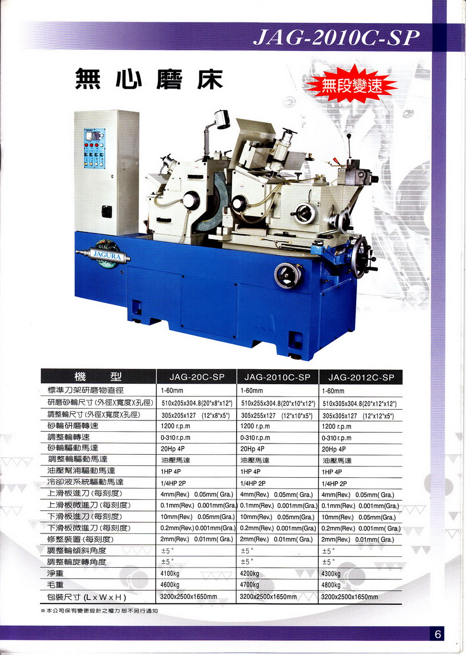 JAGURA 無心磨床 JAG-2010CSP