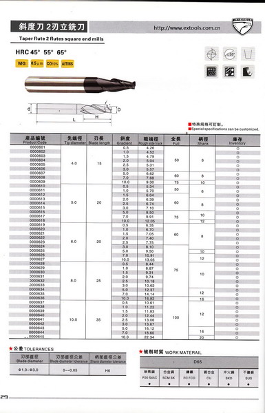 - SG-FAX 立铣刀斜边刃(粉末高速钢TICN复合涂层)7480P
