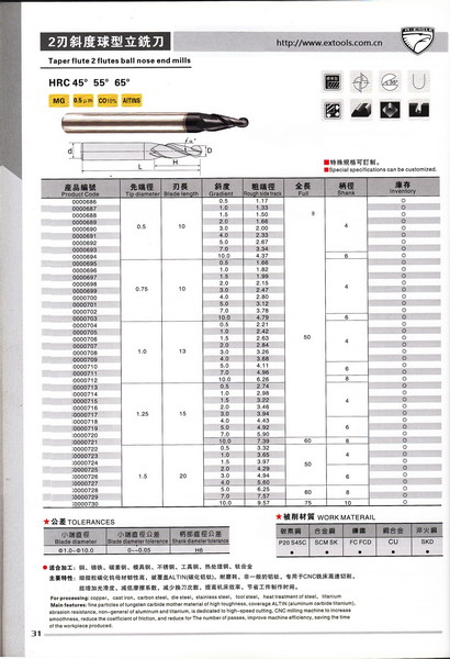 锋钢铣刀- SG-FAX 球型立铣刀(粉末高速钢TICN复合涂层)7490P