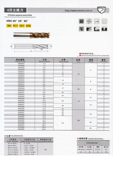 - SG-FAX 立铣刀斜边刃(粉末高速钢TICN复合涂层)7480P