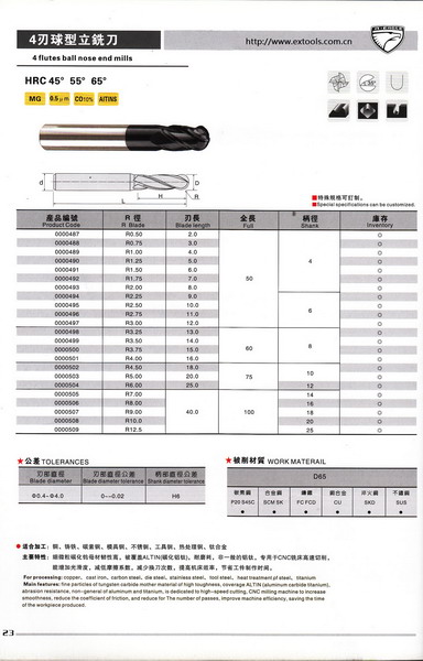 - SG-FAX 粗铣刀细齿球型(粉末高速钢TICN复合涂层)7320P