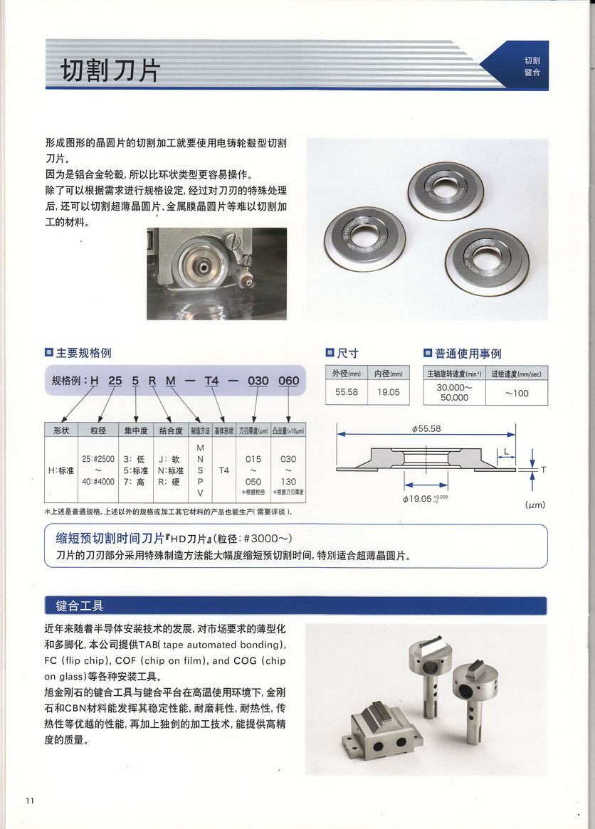 切割刀片封装部件切割用砂轮- 磨粒和结合刘表格