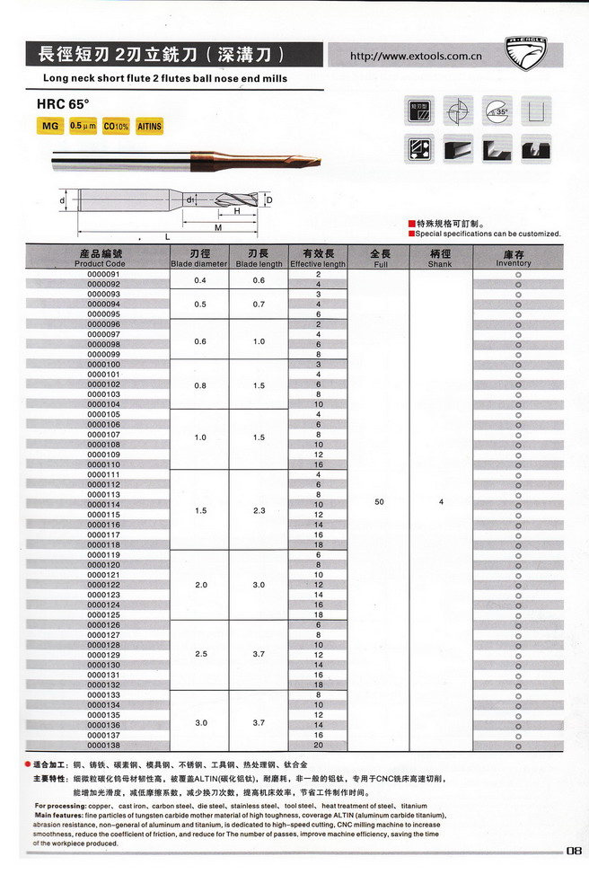 镀钛锋钢铣刀- ANCHOR.V整体超硬无涂层铣刀9458