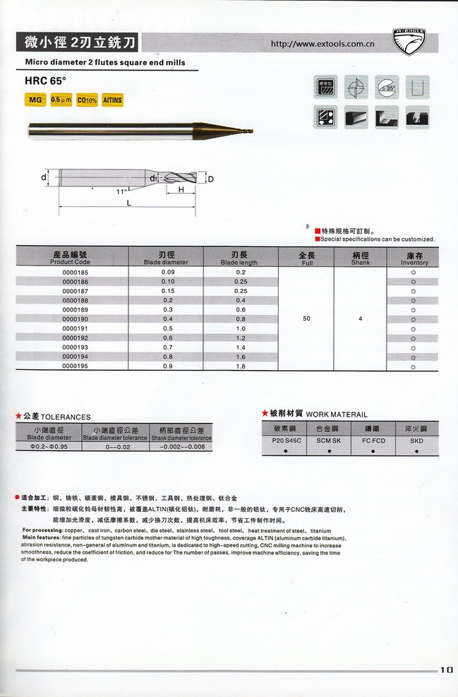 - ANCHOR.V整体超硬无涂层铣刀9320