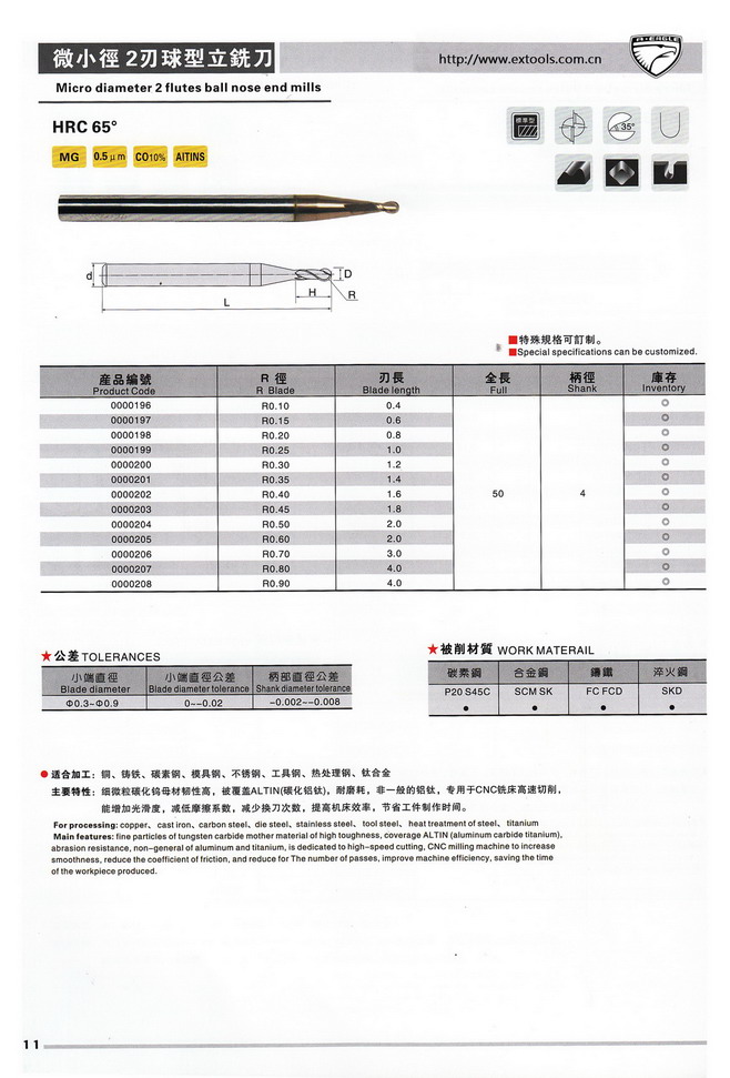 - ANCHOR.V整体超硬无涂层铣刀9452