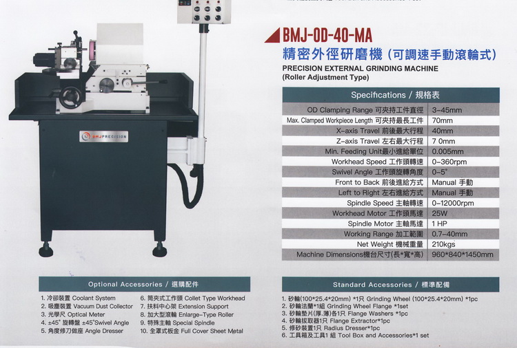 精密外径研磨机(手动滚轮式)- 外径研磨机(可调速) BMJ-OD-40-MA