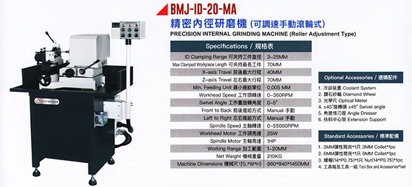 精密外径研磨机(可调速手动滚轮式)精密内径研磨机(手动滚轮式)- 内径研磨机(可调速) BMJ-ID-20-MA